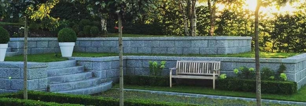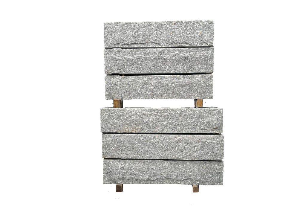 Granitt Murblokk 20 x 20 cm x fl. har råhugget front og bakside, med saget topp og bunn for enkel montering.