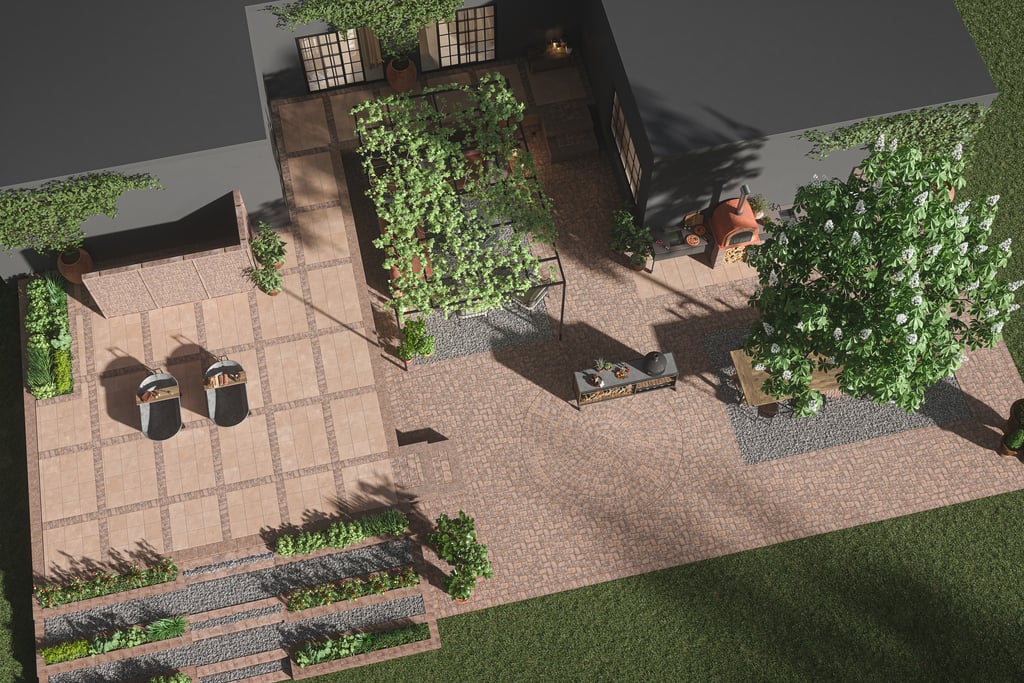 Nougat Betonghelle 40×40 cm har en matt overflate med et naturlig og elegant uttrykk som skaper lun hygge på terrassen.