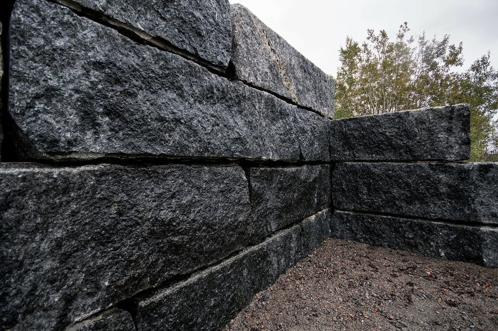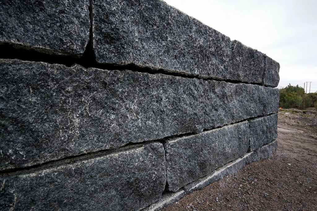 et organisk, solid, og samtidig et elegant preg. Larvikitt Murblokk 50×fl