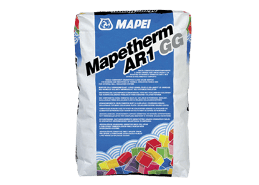 Mapetherm AR1 GG. En-komponent sementbasert mørtel med gradert tilslag opp til 1 mm for liming og pussing av termiske isolasjonssystemer.