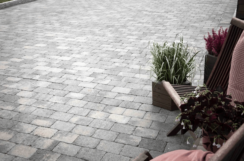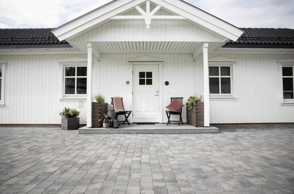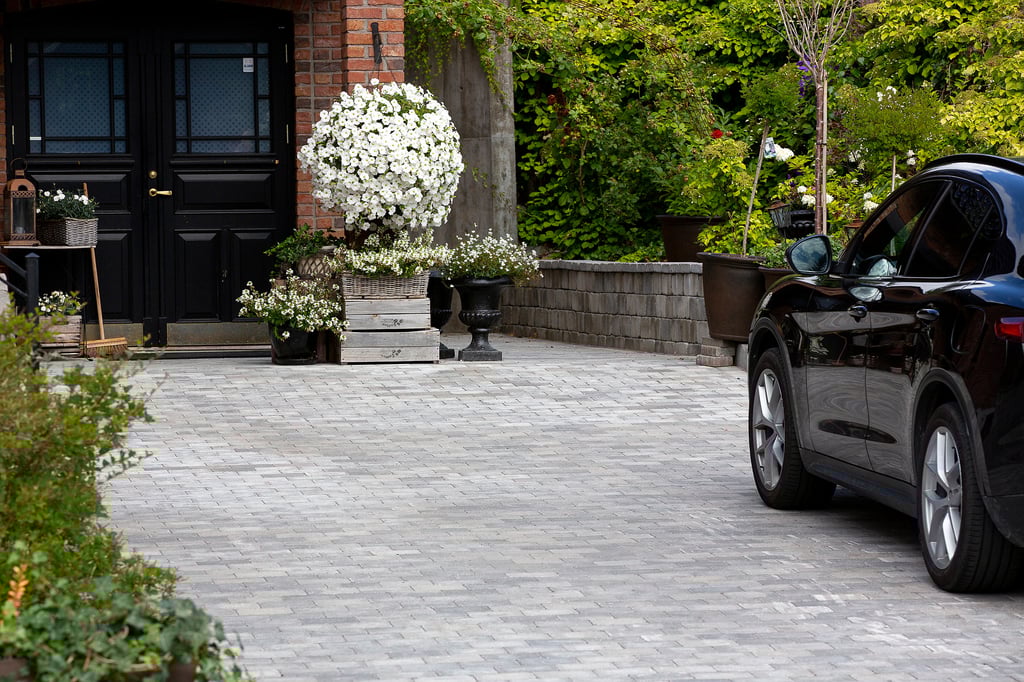 Rådhus Belegningsstein Gråmix 5 cm tromlet belegningsstein er en moderne belegningsstein med en myk struktur i overflaten som gir liv til dekket.