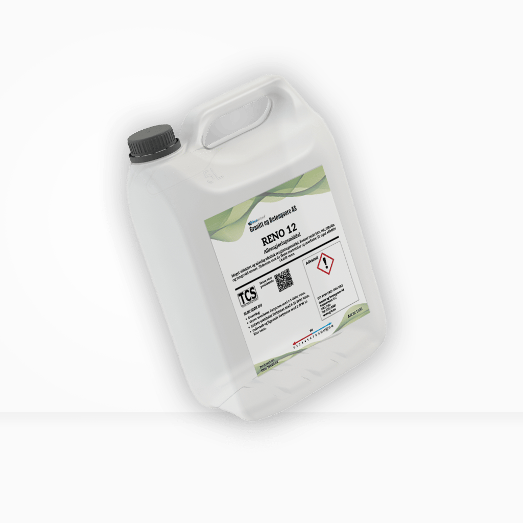 Allrengjøring alkalisk Reno12 er svært effektivt og allsidig alkalisk rengjøringsmiddel. Rengjør raskt fett, sot, nikotin og inngrodd smuss. Skånsom mot de fleste materialer og overflater. Raskt biologisk nedbrytbar. Er også effektivt i kaldt vann.