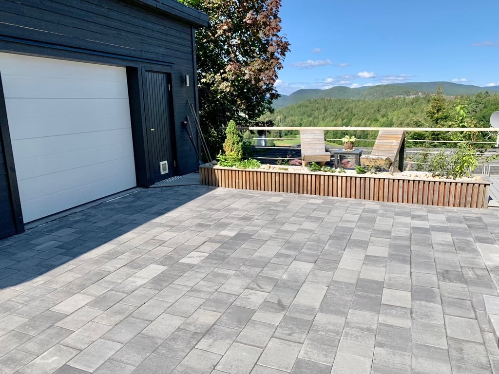 Torg Belegningsstein Gråmix Aveny 6 cm er en enkel og ren steinvariant som gir et moderne, rett og stramt uttrykk.
